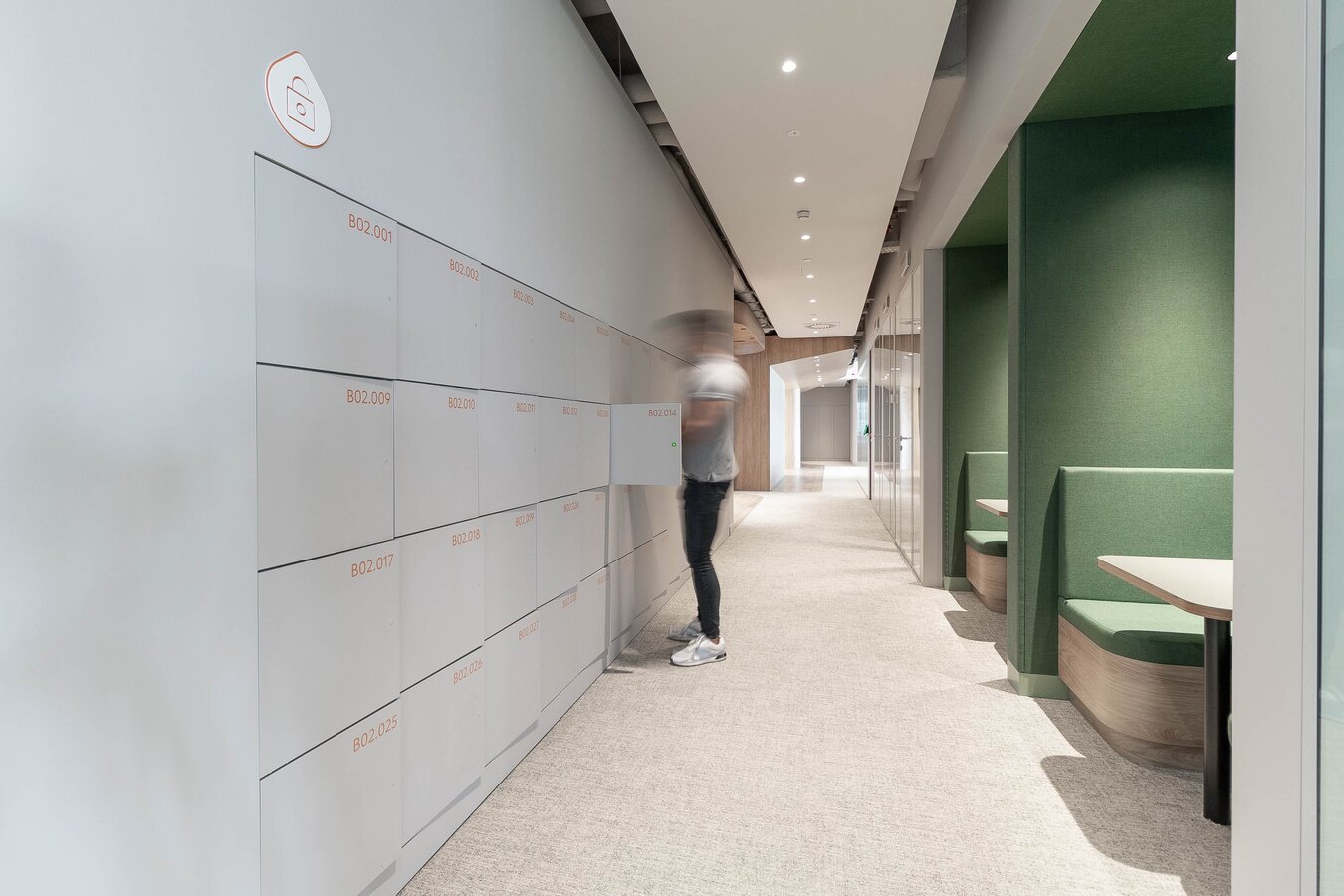 Zum Einsatz kam ein smartes Schrankschließsystem von Gantner im Free-Locker-Modus und vollständig integriert in die Spaceti-Plattform. Im gesamten Gebäude wurden die batteriebetriebenen Schlösser GL7p- und ECO.Side Lock installiert, die eine kabellose, wartungsarme und sichere Verwaltung ermöglichen. Mitarbeitende können Schließfächer selbstständig auswählen, reservieren und teilen – komfortabel über eine mobile App-Anwendung. Facility Manager profitieren von einer zentralen Steuerung und vollständiger Transparenz. Die Lösung wird sowohl in den Bürobereichen als auch in den Umkleiden des Fitnessbereichs genutzt und unterstützt so das flexible Arbeitsplatzkonzept von Galp.